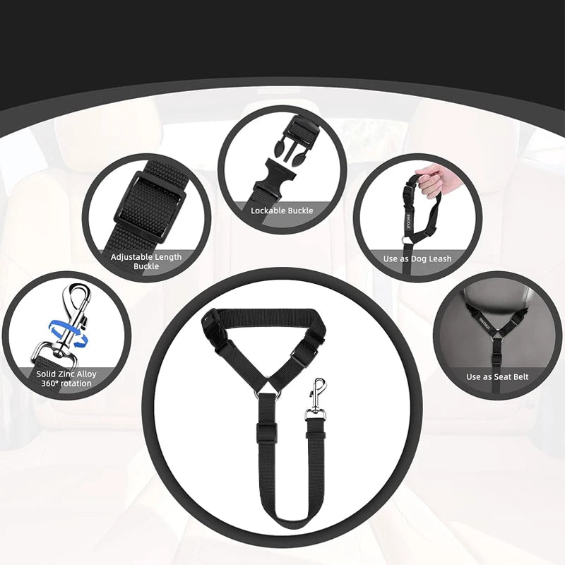 [Fácil de usar e versátil] O arnês para cães pode ser facilmente suspenso no encosto de cabeça ou preso à fivela da tira, fivela de metal giratória presa ao arnês do peito do cão e uma coleira de cachorro não é recomendada para garantir a segurança do cão. Também pode ser usado com capas de assento para animais de estimação. Não é apenas um cinto de segurança de carro 2 em 1, mas também um cinto de uso geral.